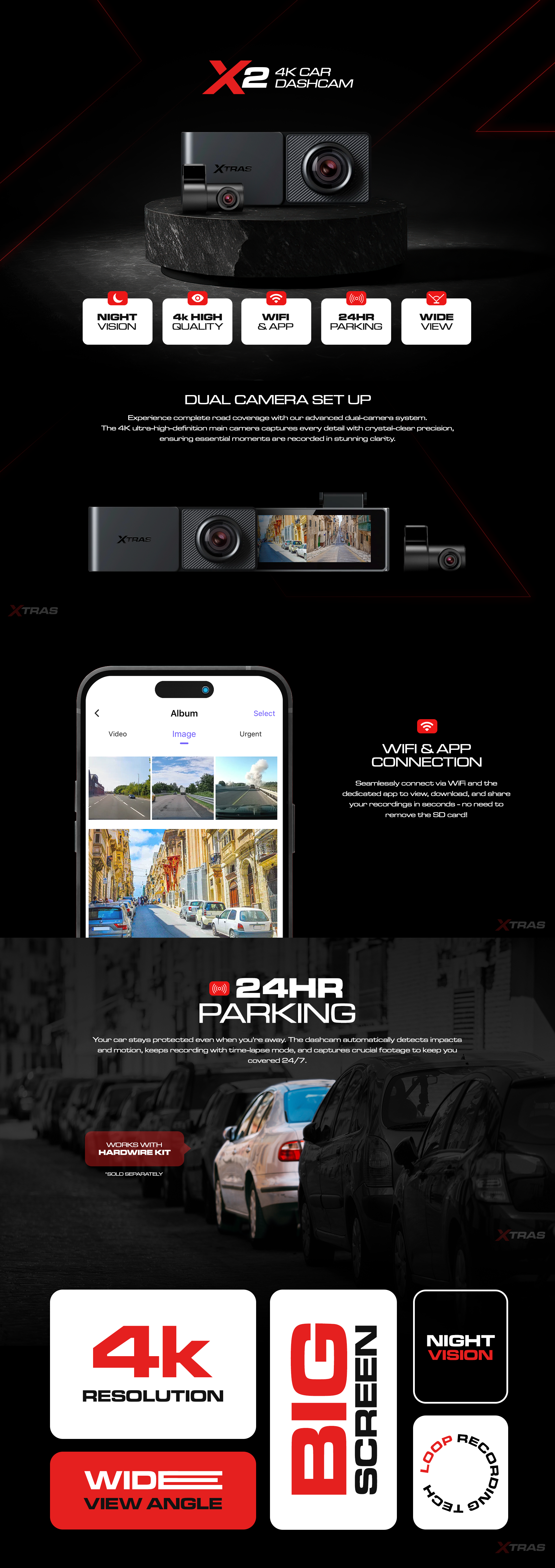 XTRAS | X2 DUAL 4K CAR DASHCAM BUNDLE - FRONT & REAR